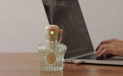 香水瓶の形をした卓上加湿器。超音波式の加湿器です。パッケージもエレガントで素敵なので贈り物にもピッタリ。気分が華やぐ加湿器です。